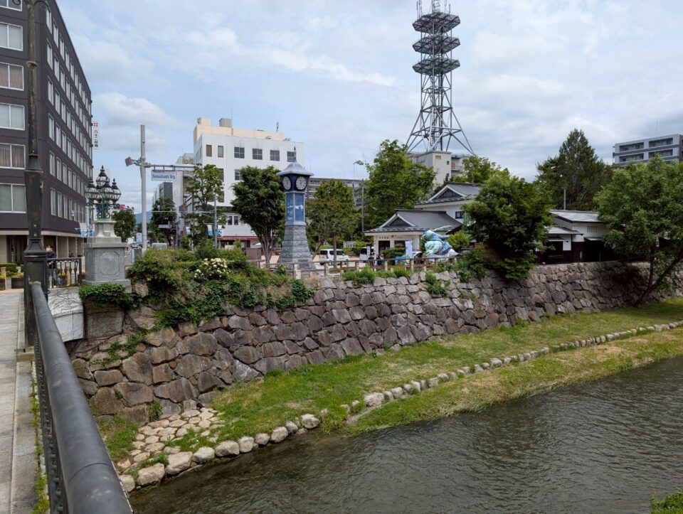 Les environs du château proposent de nombreux restaurants et boutiques. La Ruelle de Nawate et le Quartier de Nakamachi sont accessibles à pied et sont bordées de boutiques traditionnelles, de cafés et de restaurants servant des spécialités locales comme les nouilles soba et les petit pains oyaki.